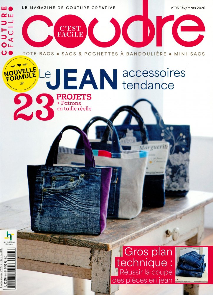 Dans chaque numéro du magazine Coudre c'est facile découvrez une quinzaine de modèles, classés par thématique : des explications techniques détaillées, des dessins explicatifs, des gabarits en taille réelle, le carnet du Net.
